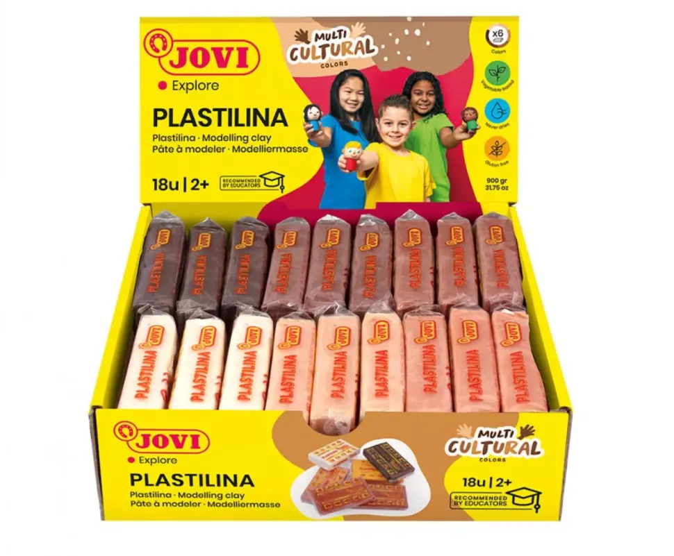 - La plastilina JOVI es una pasta para modelar 100% vegetal para jugar en divertidos colores, muy moldeable, adecuada a partir de los 2 años, sin gluten y que nunca se seca.