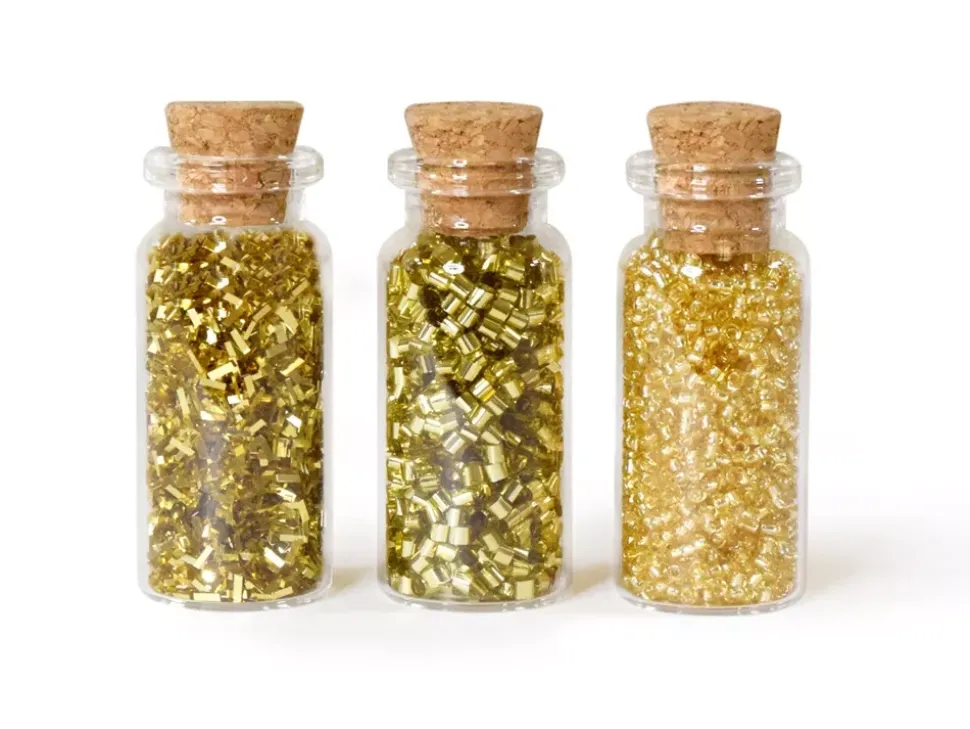 Set 3 tarros con Cuentas y Semillas Oro Multicraft