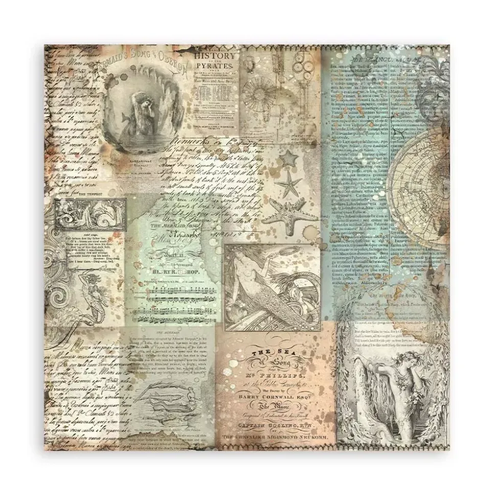 Set 4 hojas de tela Fabric Songs Of The Sea Stamperia 30x30cm