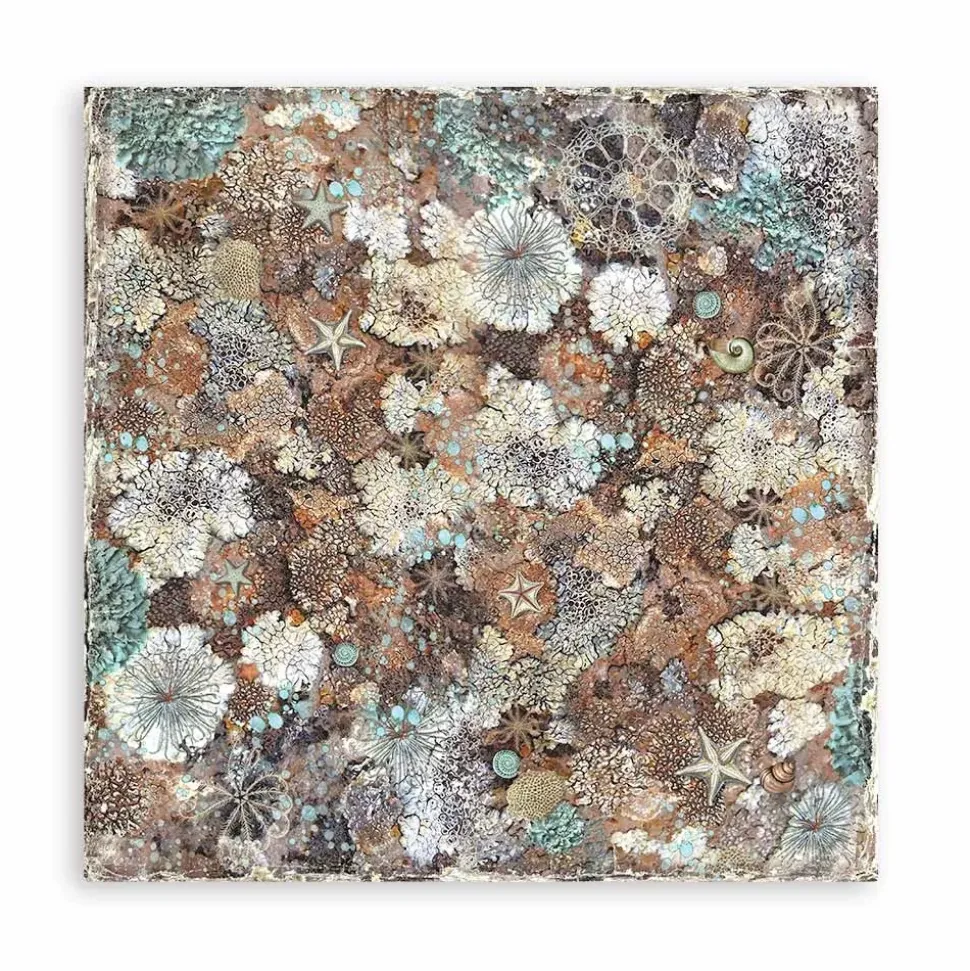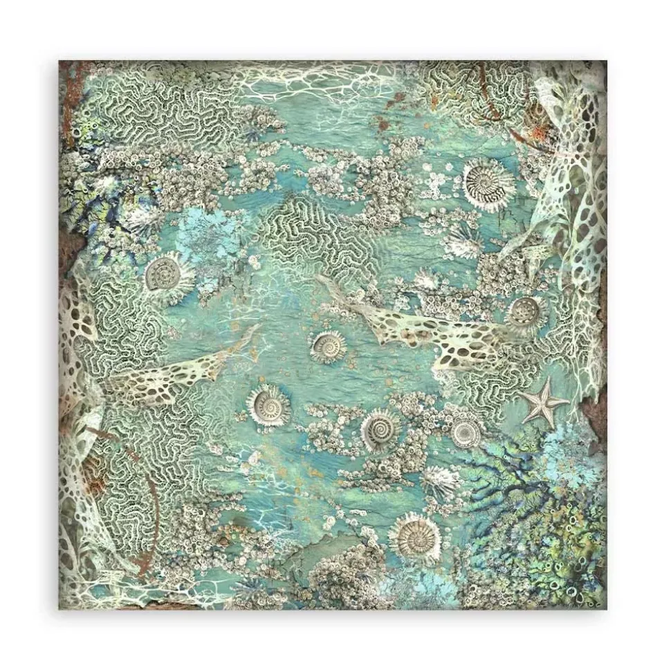 Stamperia nos lleva a un viaje al fondo del mar con su nueva colección, Songs of the Sea. Déjate hechizar por los cantos de sirena y descubre un fantástico mundo submarino. Tesoros, galeones, cartas de navegación, conchas y corales… Todo esto y mucho más encontrarás en sus papeles, con una paleta donde predominan el verde agua y el beige. Si te gusta el mar, ¡no te la puedes perder!