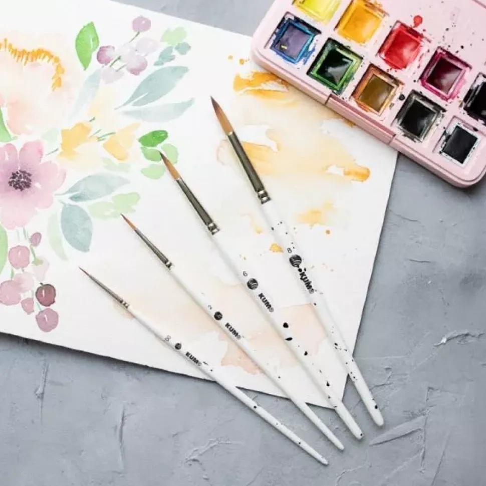 - Están hechos de fibras sintéticas especiales de alta tecnología y tienen una punta perfectamente redondeada, lo que permite (para cada tamaño de pincel) pintar los detalles más pequeños y trabajar con mucha precisión.