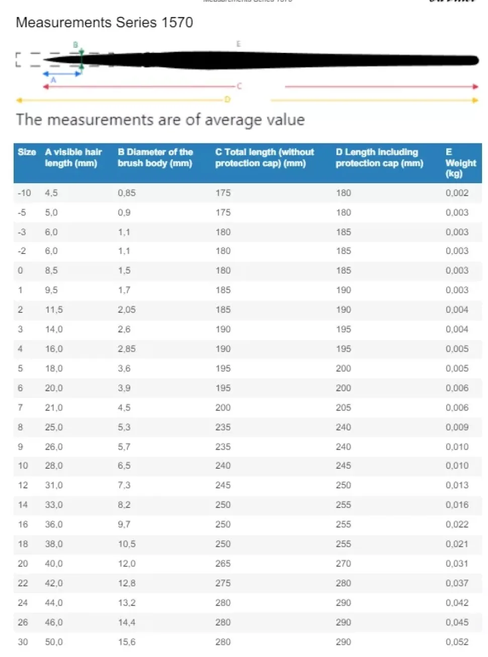 - Incluye 5 pinceles de la serie 1570 redondos nº 3/0, 0, 2 y 4.
