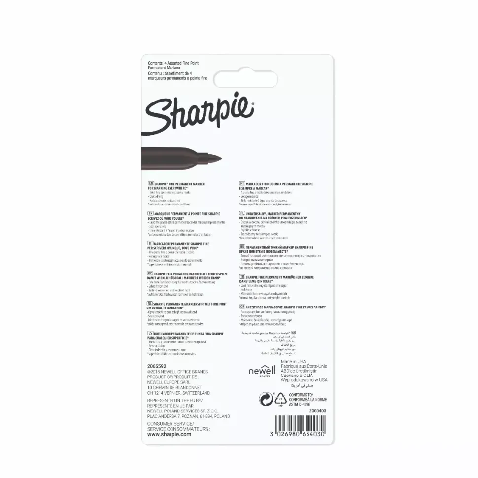 La icónica tinta de los rotuladores permanentes Sharpie, original e inconfundible, se seca rápidamente y resiste el desgaste y el contacto con el agua.
