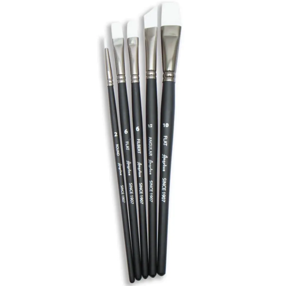 - Set de 5 pinceles especiales para pintura para cuero Angelus.