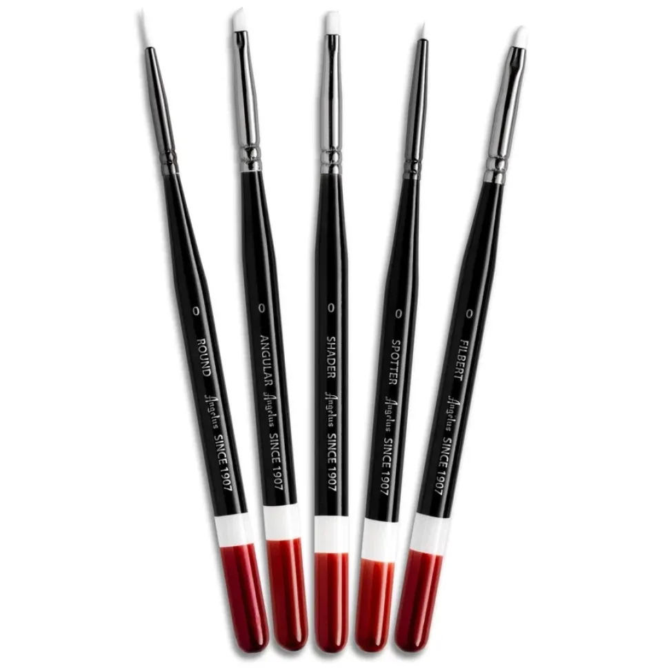 - Set de 5 pinceles especiales para pintura para cuero Angelus.