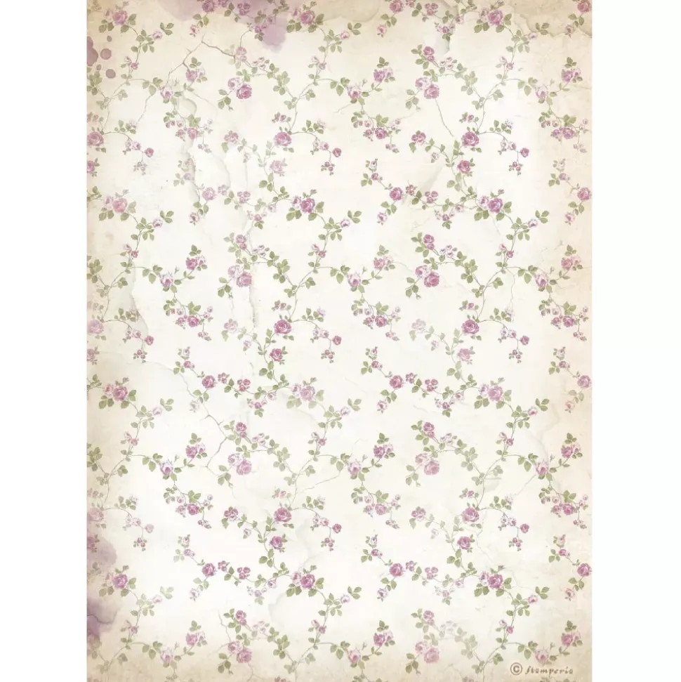 - Papel de arroz decorado diseñado por Stamperia con un gramaje muy bajo cuya ligereza y adaptabilidad a casi cualquier superficie lo hace apto para cualquier técnica de decoupage.