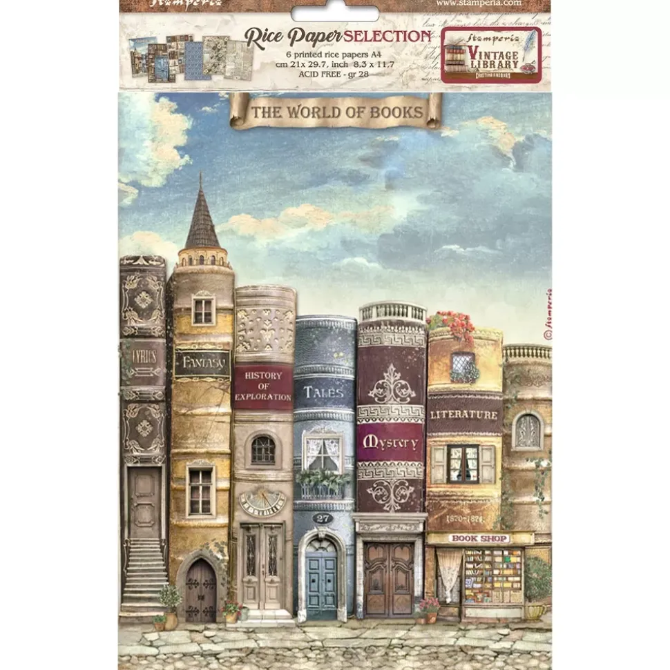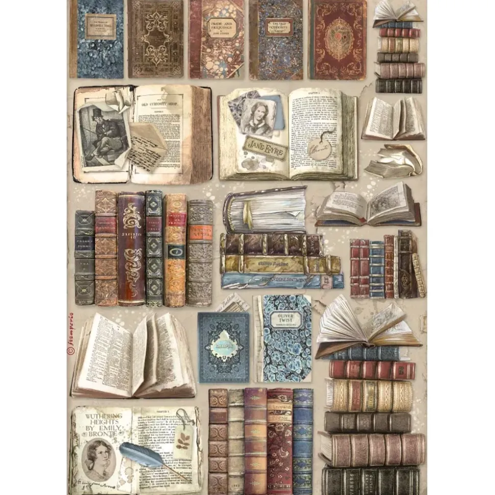 Set 6 papeles de arroz Vintage Library Stamperia 21x29cm