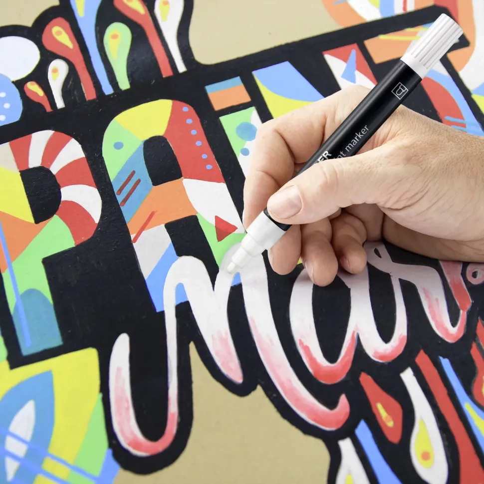 - Para escribir, decorar y diseñar de forma opaca en casi todas las superficies claras y oscuras, como papel, cartón, plástico, metal, vidrio, cerámica, madera, piedra, etc.