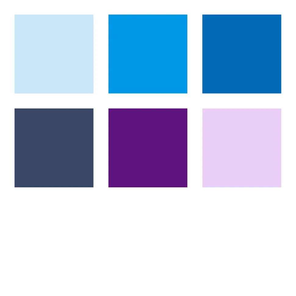 - Colores que incluye: azul claro 30, azul hielo 310, azul índigo 36, azul pacífico 39, violeta 6 y luz lavanda 620.