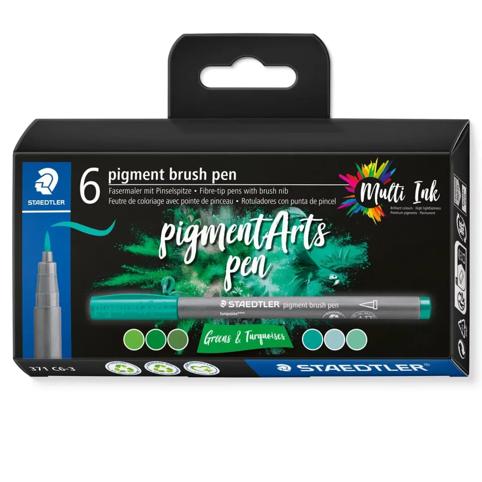 Set 6 Rotuladores pincel verdes y turquesas Multi Ink Staedtler