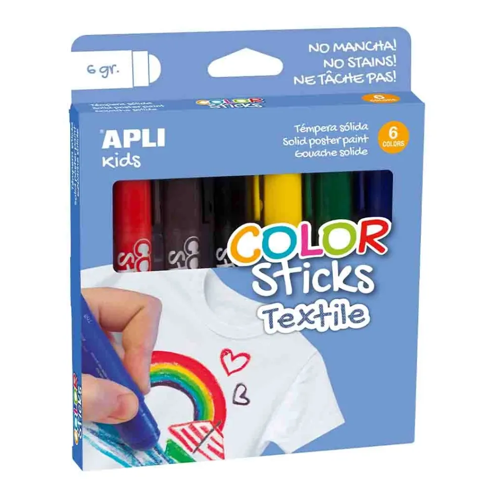 Set 6 témperas sólidas textiles colores surtidos Apli 6g