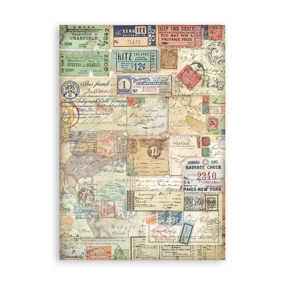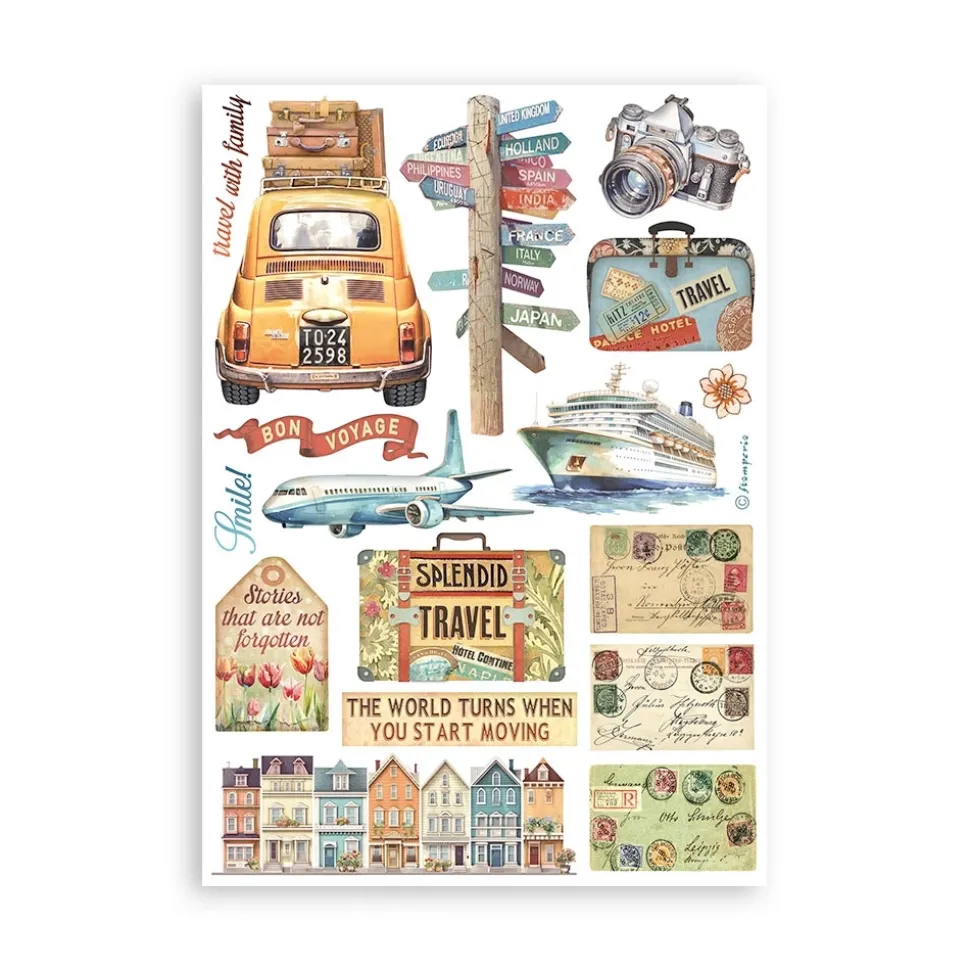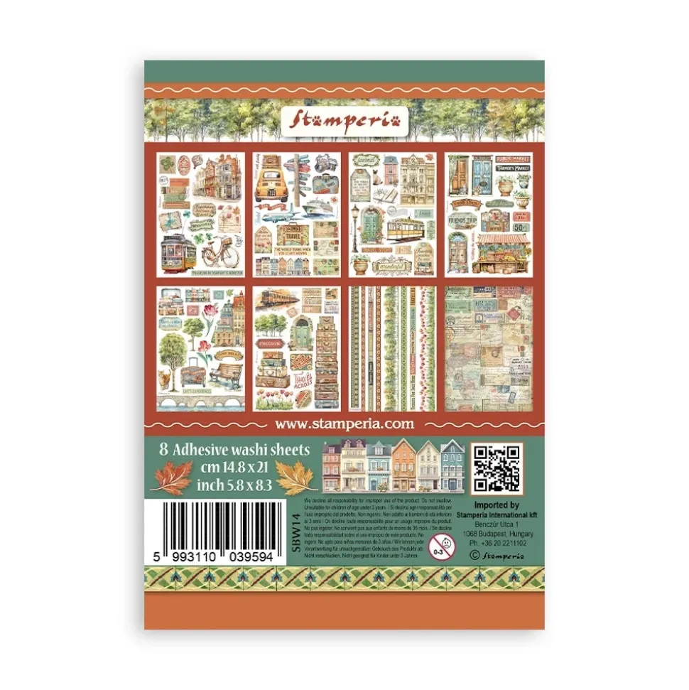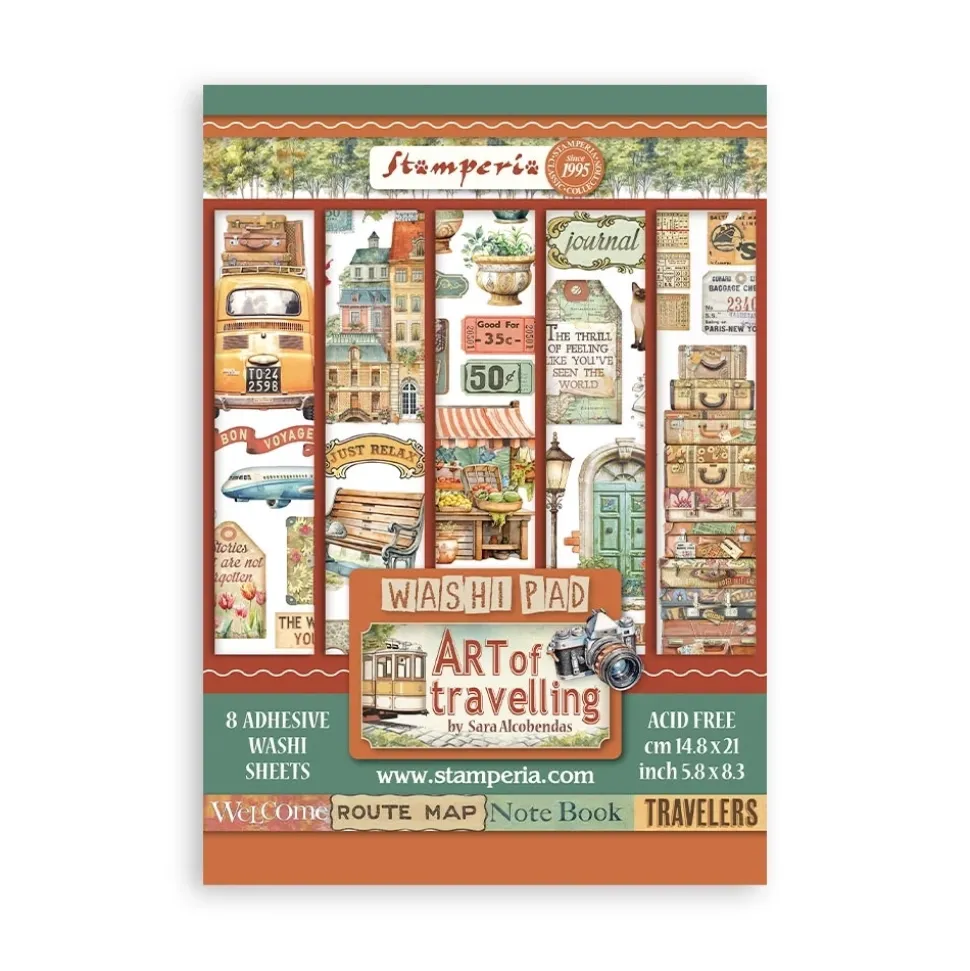 Set 8 hojas de washi tape Art of Travelling Stamperia A5