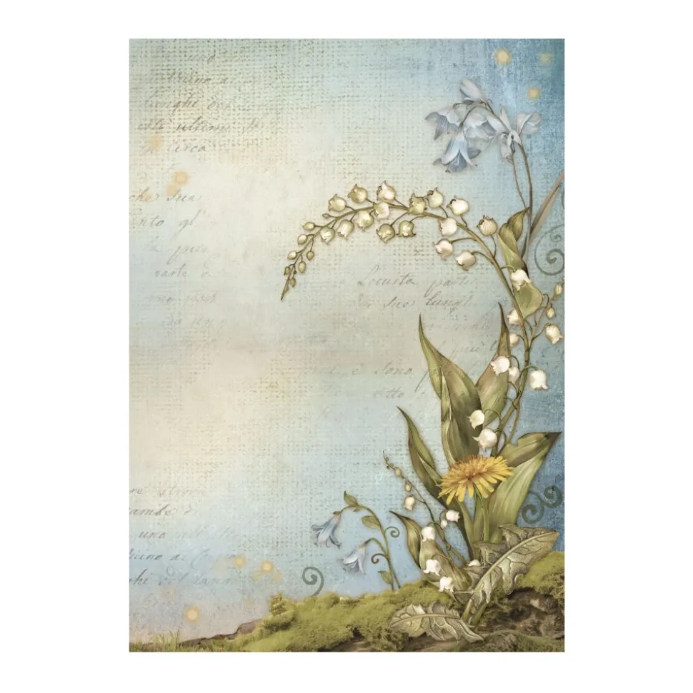 - Papel de arroz decorado diseñado por Stamperia con un gramaje muy bajo cuya ligereza y adaptabilidad a casi cualquier superficie lo hace apto para cualquier técnica de decoupage.