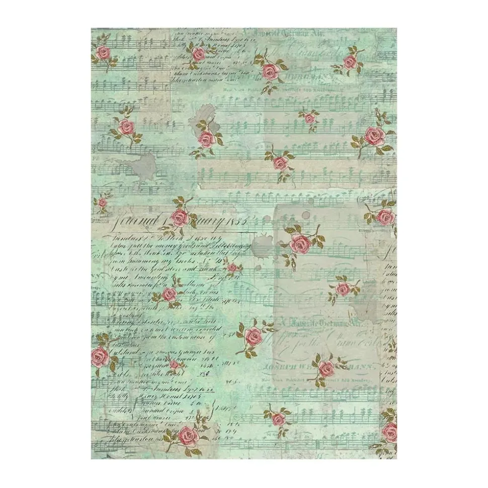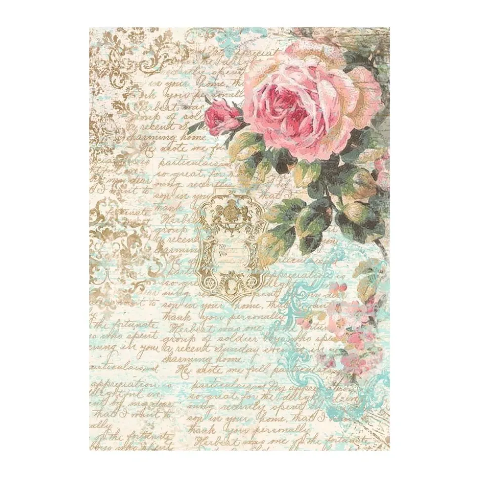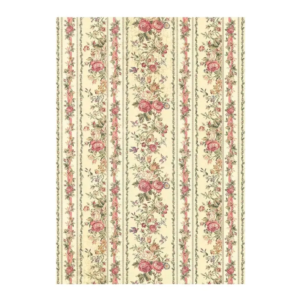 - Papel de arroz decorado diseñado por Stamperia con un gramaje muy bajo cuya ligereza y adaptabilidad a casi cualquier superficie lo hace apto para cualquier técnica de decoupage. Permite forrar tanto por el interior como del exterior en superficies planas y redondas. Sobre el cristal es posible mantener la transparencia, sobre tela mantener la suavidad y sobre el mobiliario permite decorar el forro interior.