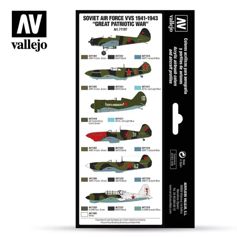 Set 8 pinturas de modelismo Soviet Air Force VVS Air War Series Vallejo 17ml