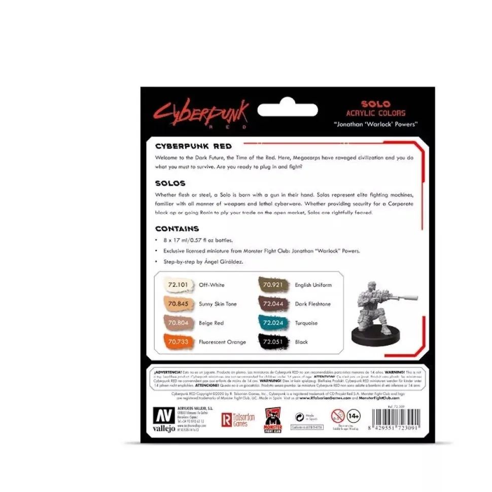 Los sets Cyberpunk Red son el resultado de la colaboración entre Monster Fight Club y Vallejo. Cyberpunk Red es la nueva edición de Cyberpunk, el juego de rol creado por Mike Pondsmith y publicado por R. Talsorian Games.