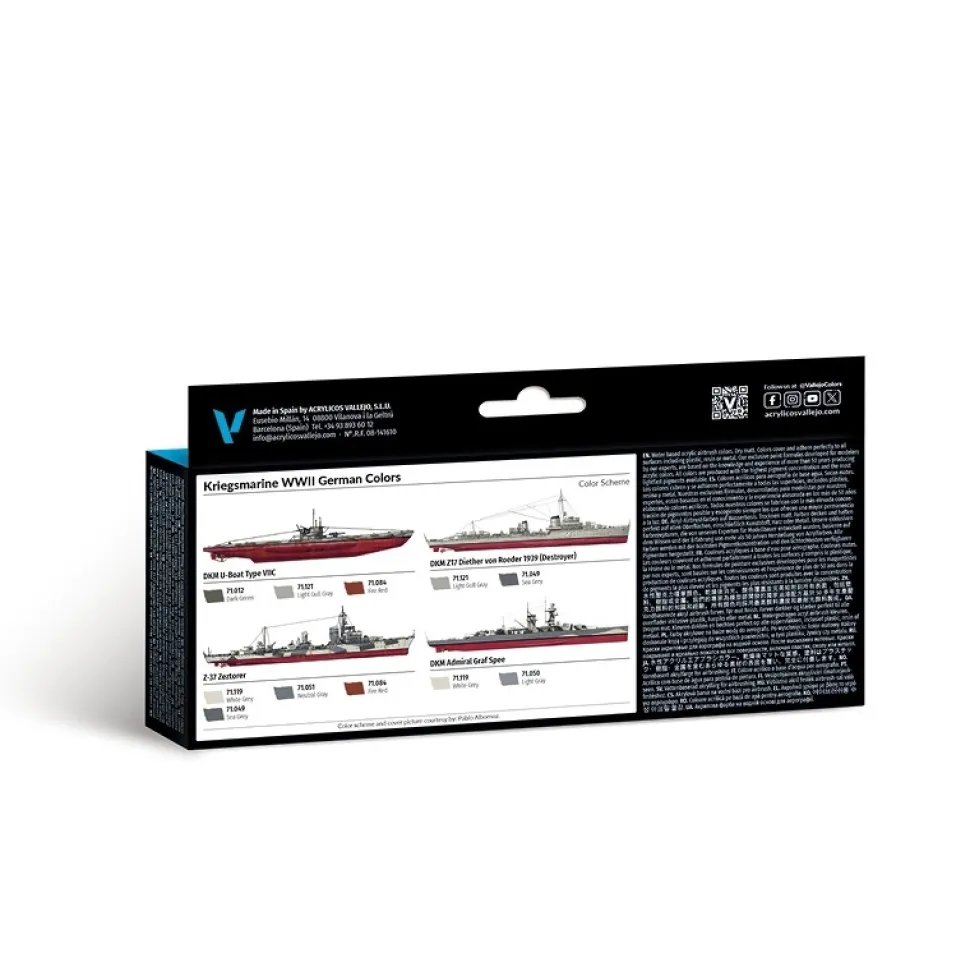 Set 8 pinturas de modelismo Colores Alemanes Kriegsmarine WWII Navy Vallejo 17ml