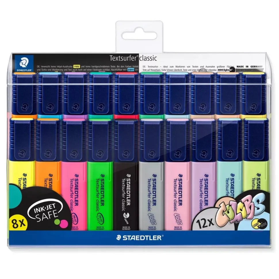 Estuche con 20 rotuladores fluorescentes Textsurfer incluyendo colores pastel y vintage.