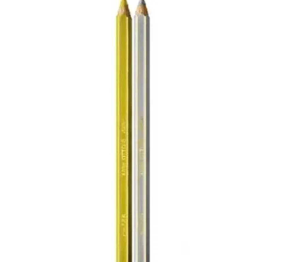 - Lápices de colores hexagonales barnizados en el color de la mina con bordes dorados.