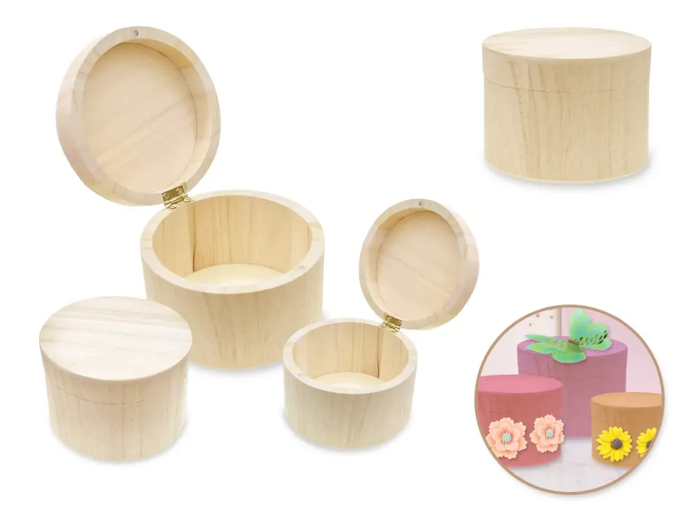 Set de 3 Cajas de Madera Redondas MultiCraft
