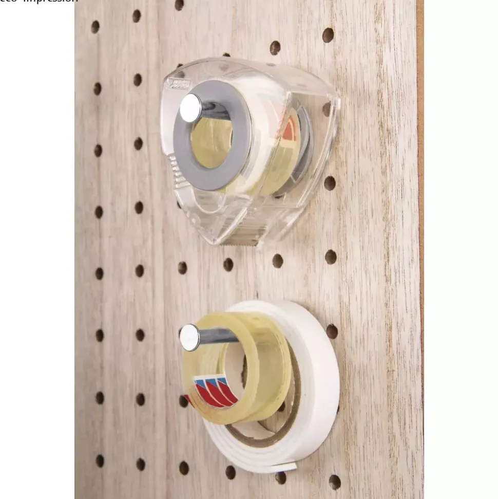 - El pasador de metal para atornillar a la madera es un práctico accesorio con función de sujeción para colgar utensilios y decoraciones.
