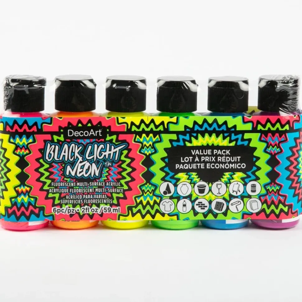 Set de 6 Pinturas Acrílicas Black Light Neon Americana 59ml