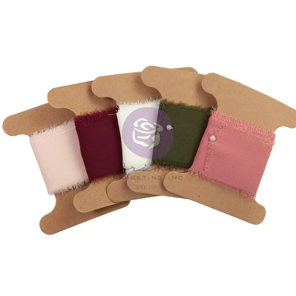 - Set de 5 cintas cintas de seda de gasa con bordes deshilachados.
