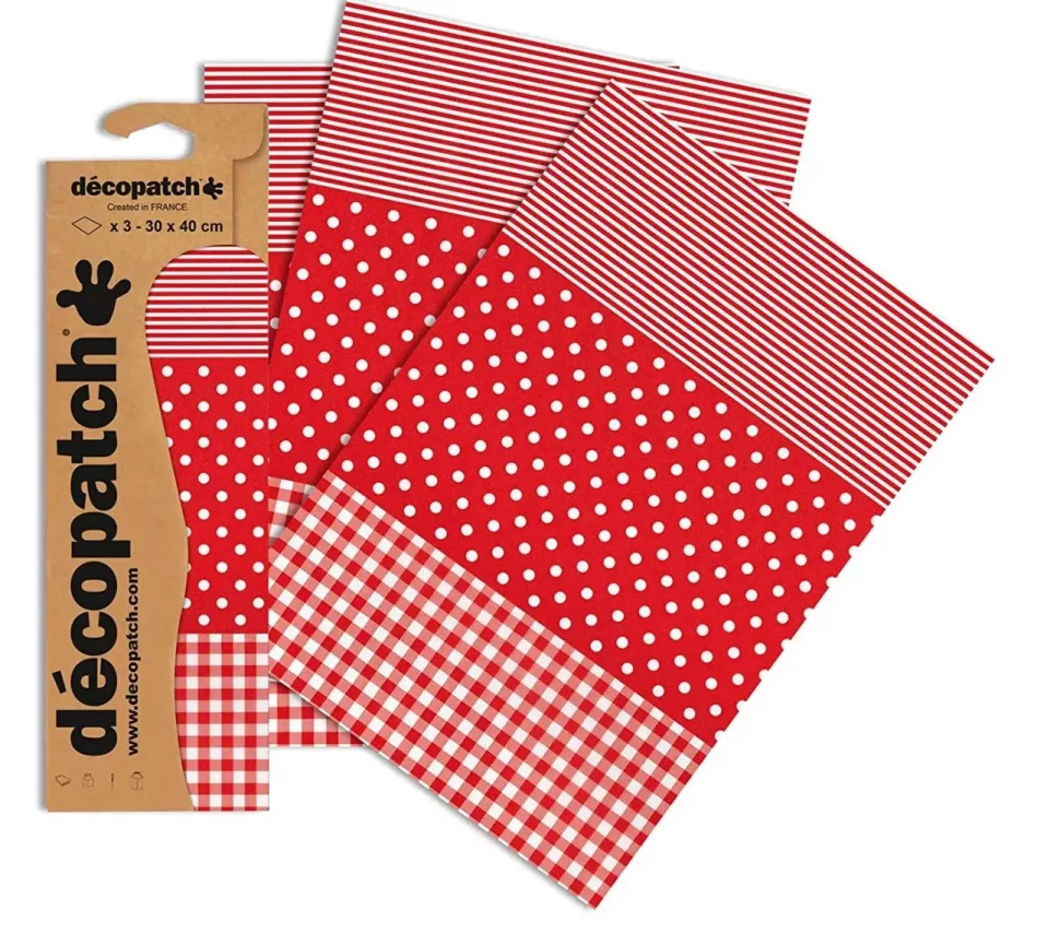 Set de papeles Decopatch Rayas, lunares y vichy rojo