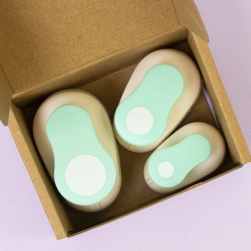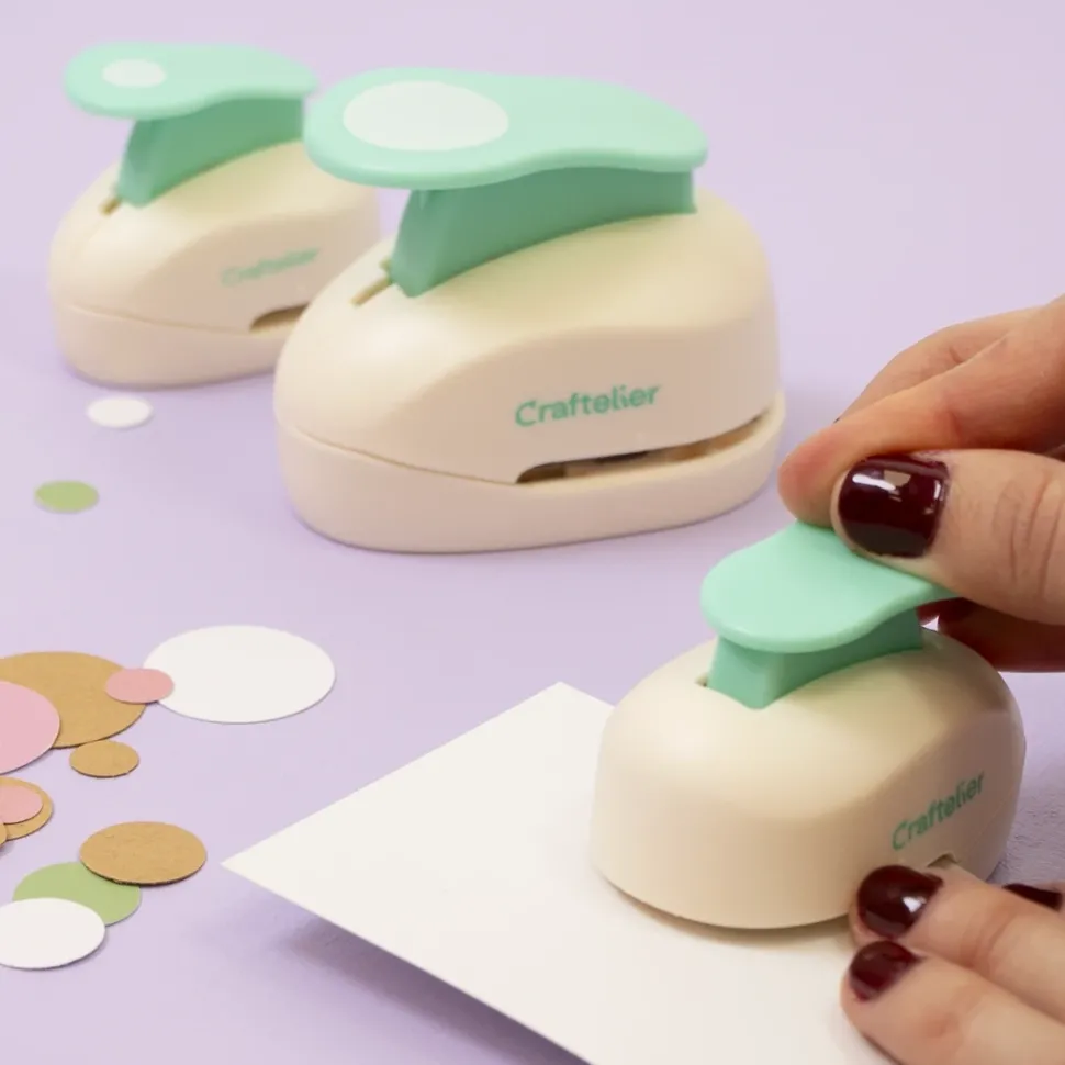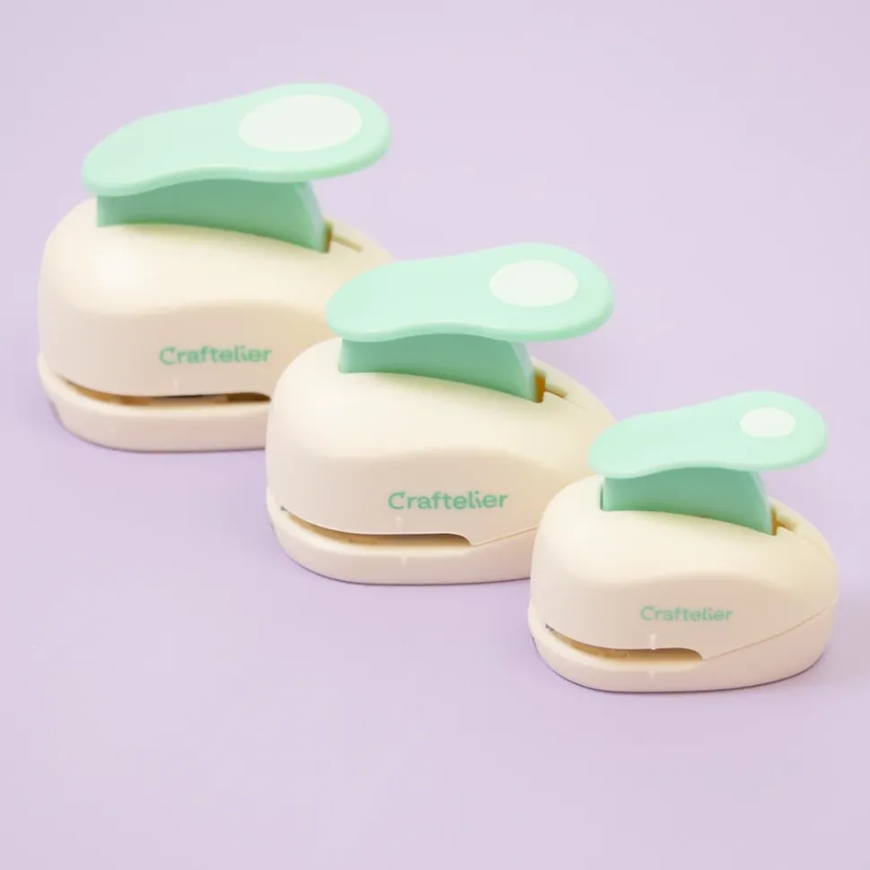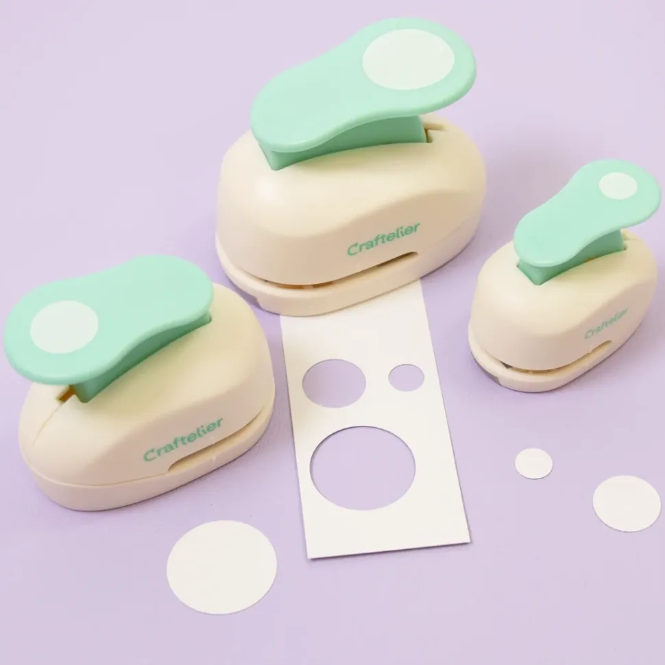 Incluye 3 perforadoras básicas para proyectos de scrapbooking y manualidades.