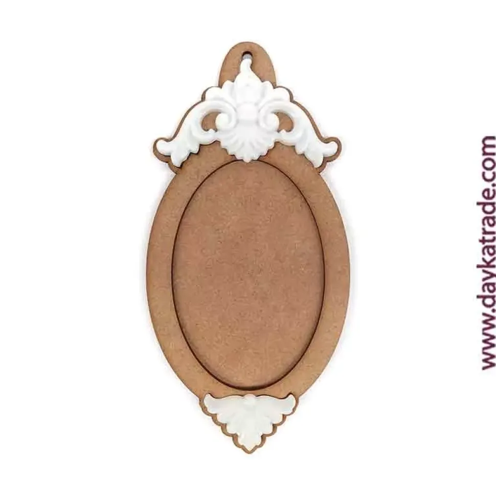 - Silueta de madera con forma de bola de Navidad ovalada vertical con resina de filigrana blanca.
