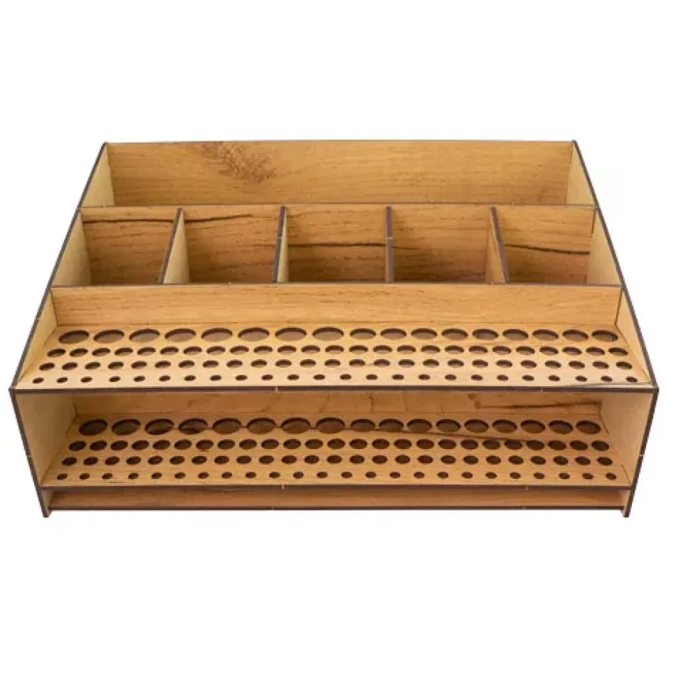 - Incluye orificios para pinceles y lápices, 5 compartimentos pequeños y uno grande.