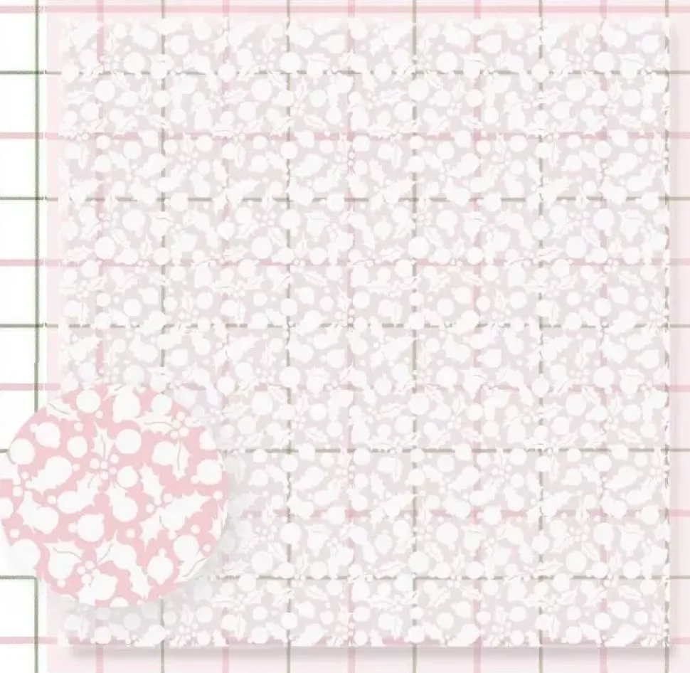 - Patrón de ramitas de acebo estampado en blanco opaco.