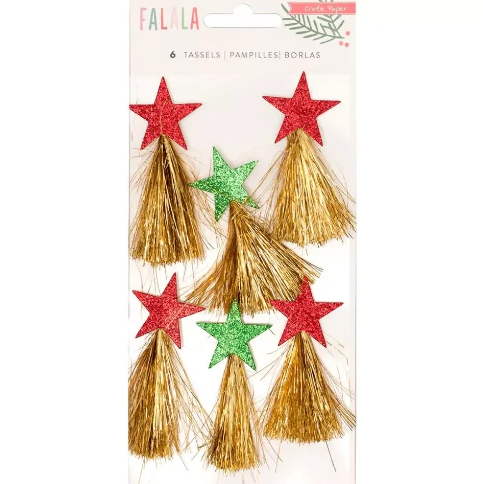 - Contiene 6 borlas de flecos dorado con las estrellas rojas y verdes.