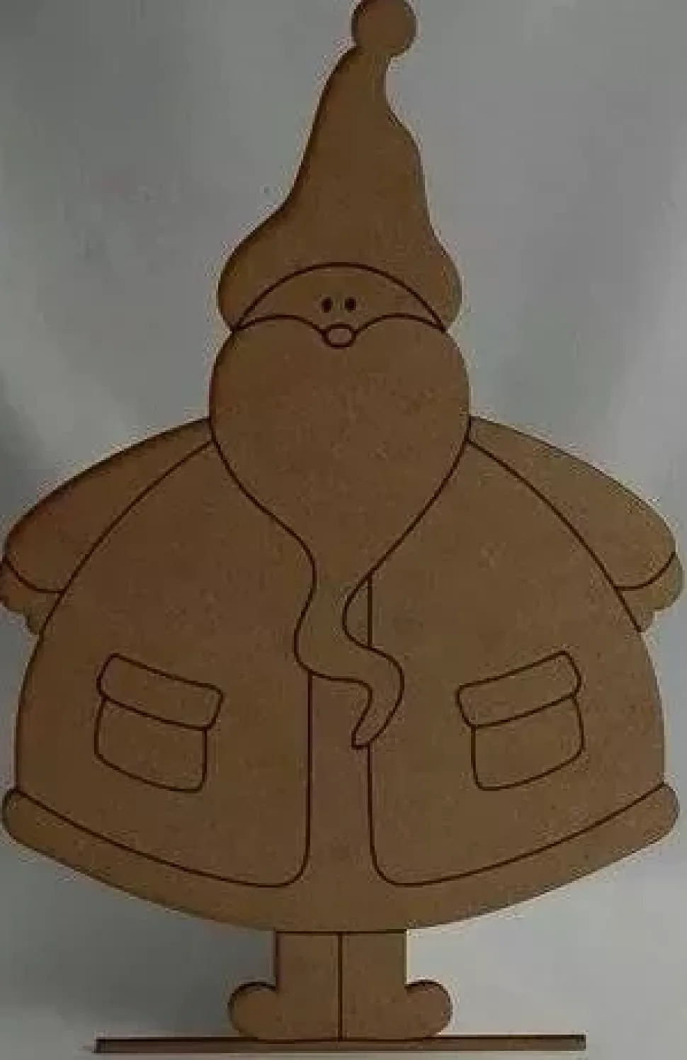 - Silueta de madera con diseño de Papá Noel sobre peana.