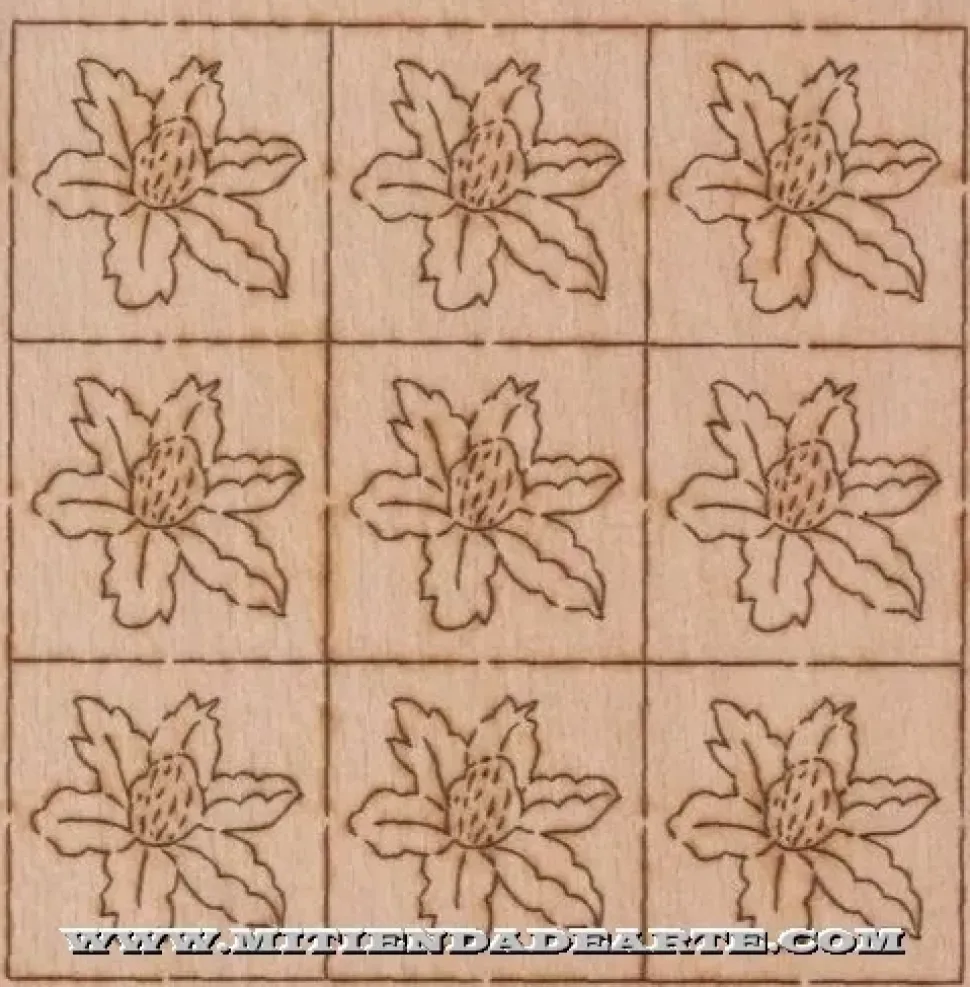 Taracea Mosaico para marquetería 100% ecológica precortada por laser, se presenta en pack. – Número de piezas: 9- Medidas: 4×4 cm.