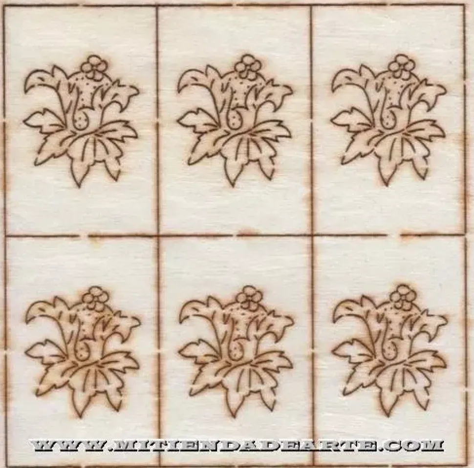 Taracea Mosaico para marquetería 100% ecológica precortada por laser, se presenta en pack. – Número de piezas: 6- Medidas: 4×6 cm.
