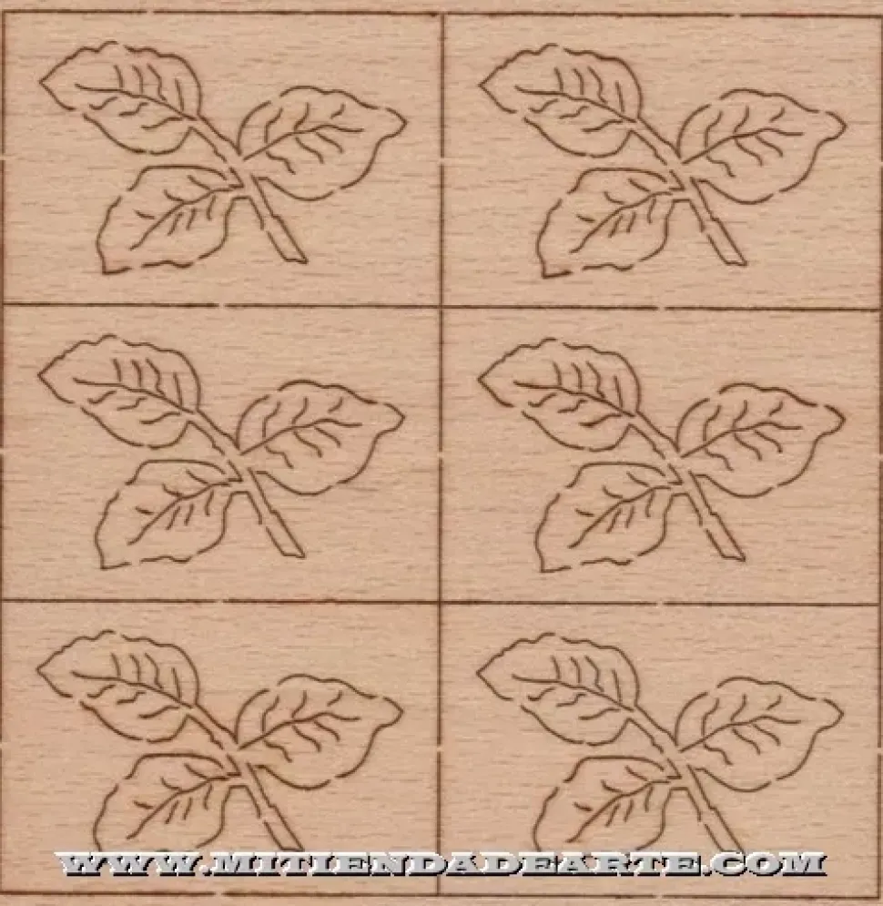 Taracea Mosaico para marquetería 100% ecológica precortada por laser, se presenta en pack. – Número de piezas: 6- Medidas: 4×6 cm.