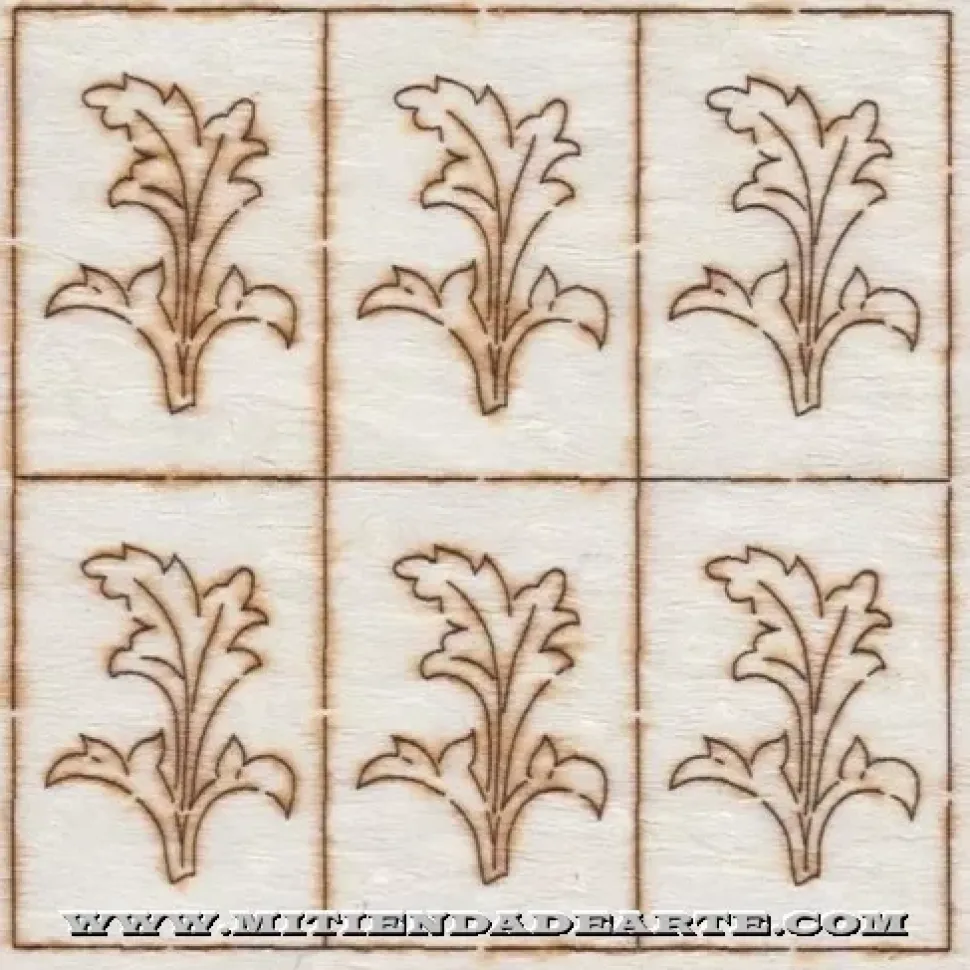 Taracea Mosaico para marquetería 100% ecológica precortada por laser, se presenta en pack. – Número de piezas: 6- Medidas: 4×6 cm.