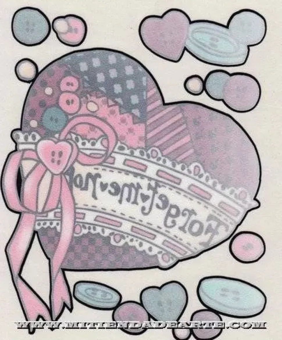 – Corazón con lazos y botones. Forget Me Not. – Medidas: 20×25 cm. Transferible para telas de algodón y rayón, se adhiere directamente con el calor de la plancha sin vapor. Lavable incluso en la lavadora. No se debe aplicar sobre tejidos de nylon. Valour transfer to cotton and rayon fabrics, attaches directly to the heat of the iron without steam. Even in the washing machine washable. Do not apply on nylon fabrics.