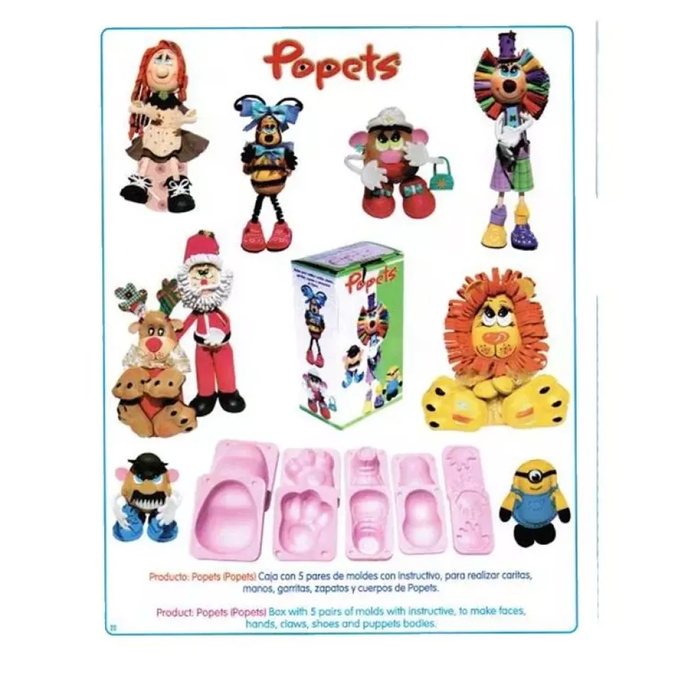 5 pares de moldes para realizar caritas, manos, cuerpos y zapatos.