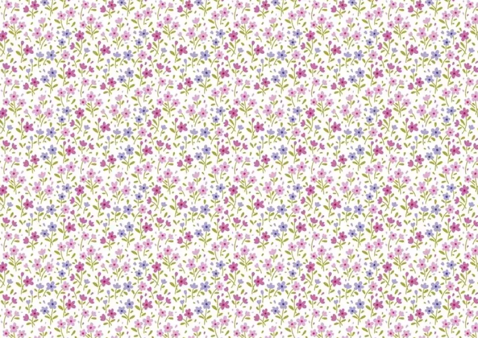 - Tela con un patrón de flores con ilustraciones sencillas en diferentes colores.