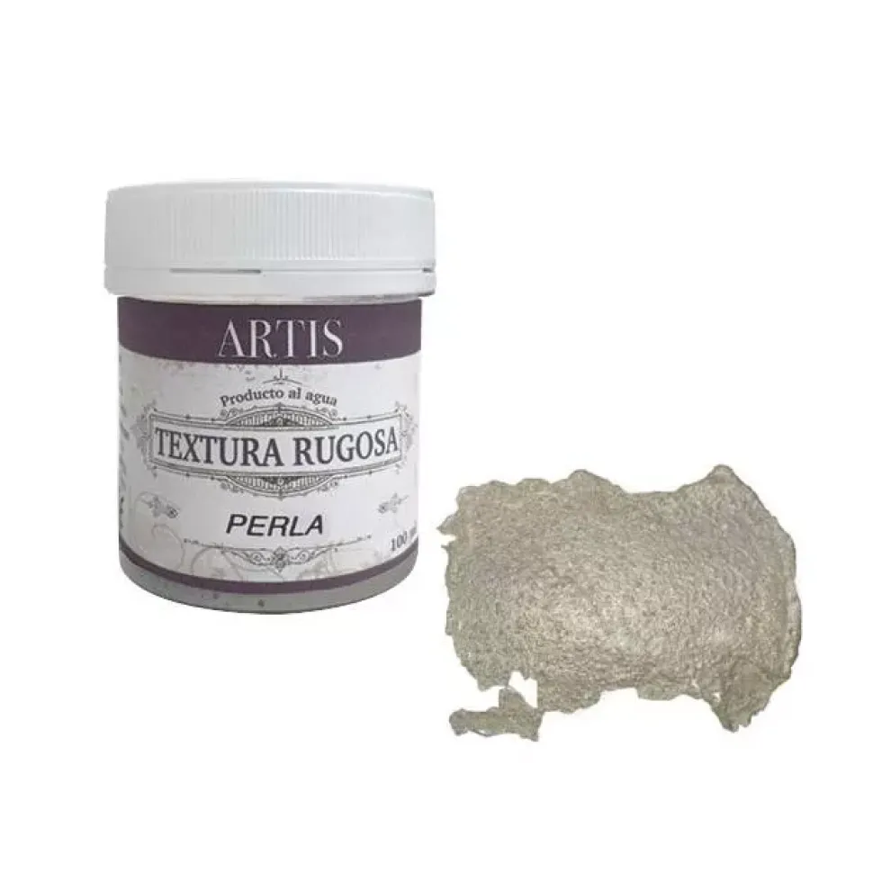 Pasta de textura rugosa en tono perla perfecto para realizar trabajos de Bellas Artes, manualidades y mix media. Posee un acabado brillo metálico.