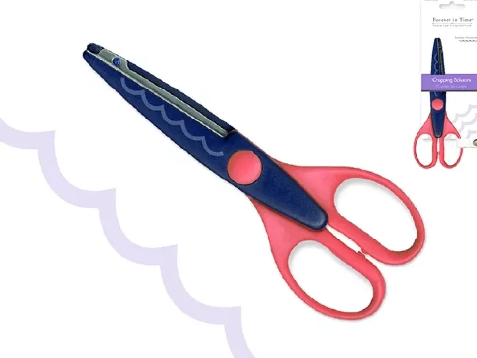 - Tijeras de hojas decorativas fabricadas en acero inoxidable que permiten personalizar bordes.