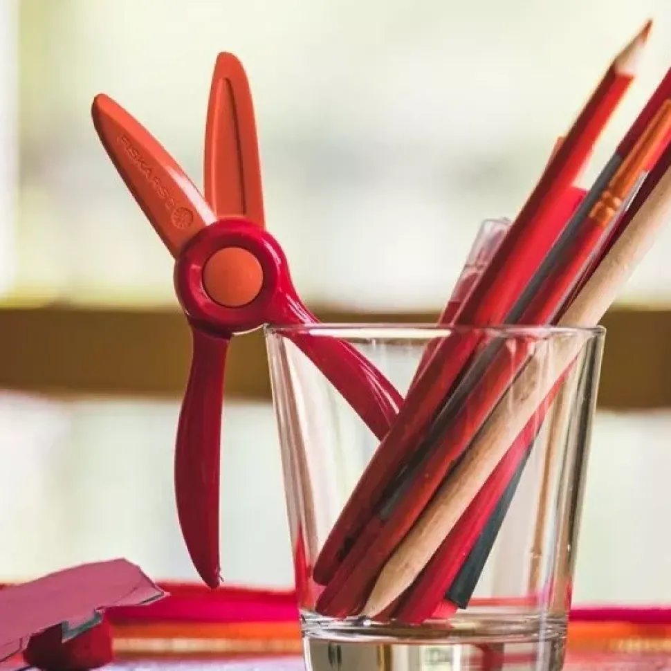 - Las tijeras para principiantes Fiskars han sido diseñadas a conciencia para las manos más pequeñas y mentes creativas, para enseñar a los principiantes a sujetar y cerrar bien las tijeras.