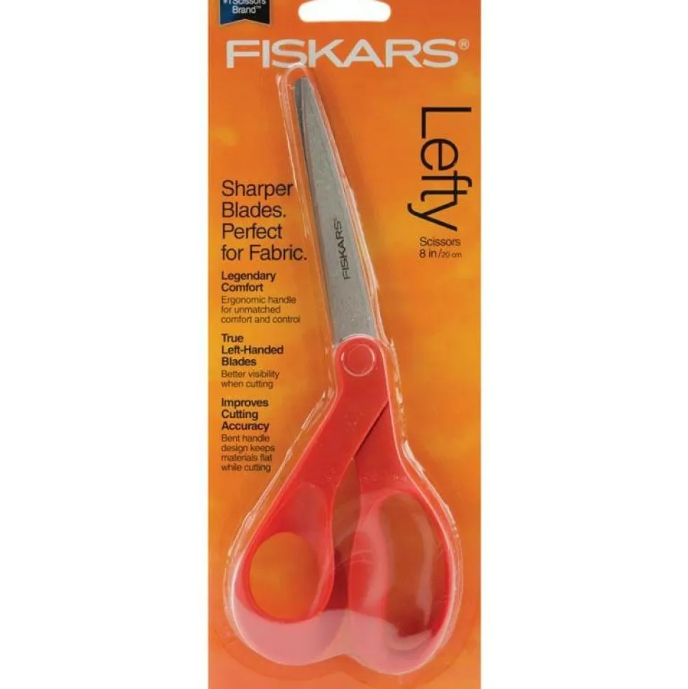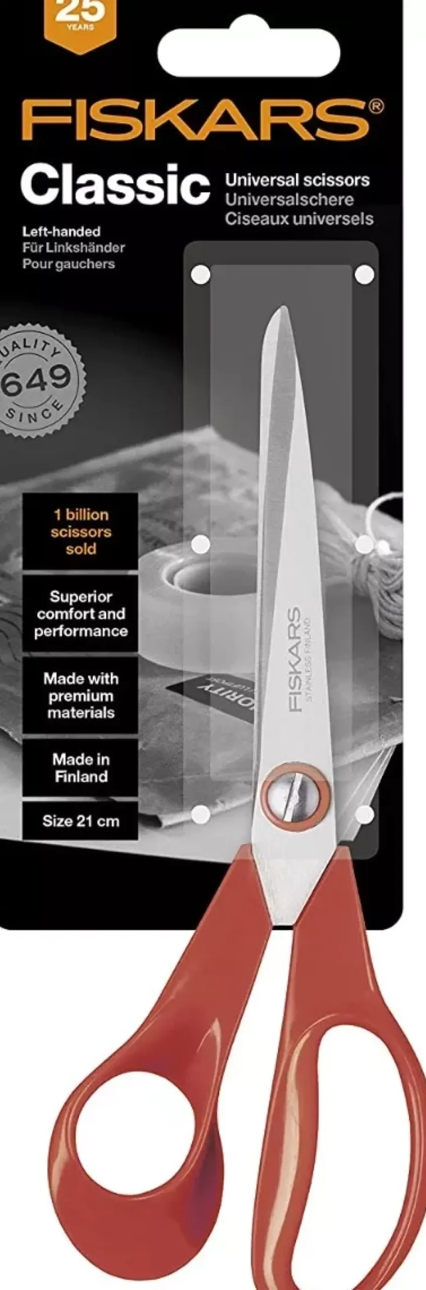 - Tijeras para material de oficina y manualidades con mango especialmente diseñado para zurdos.