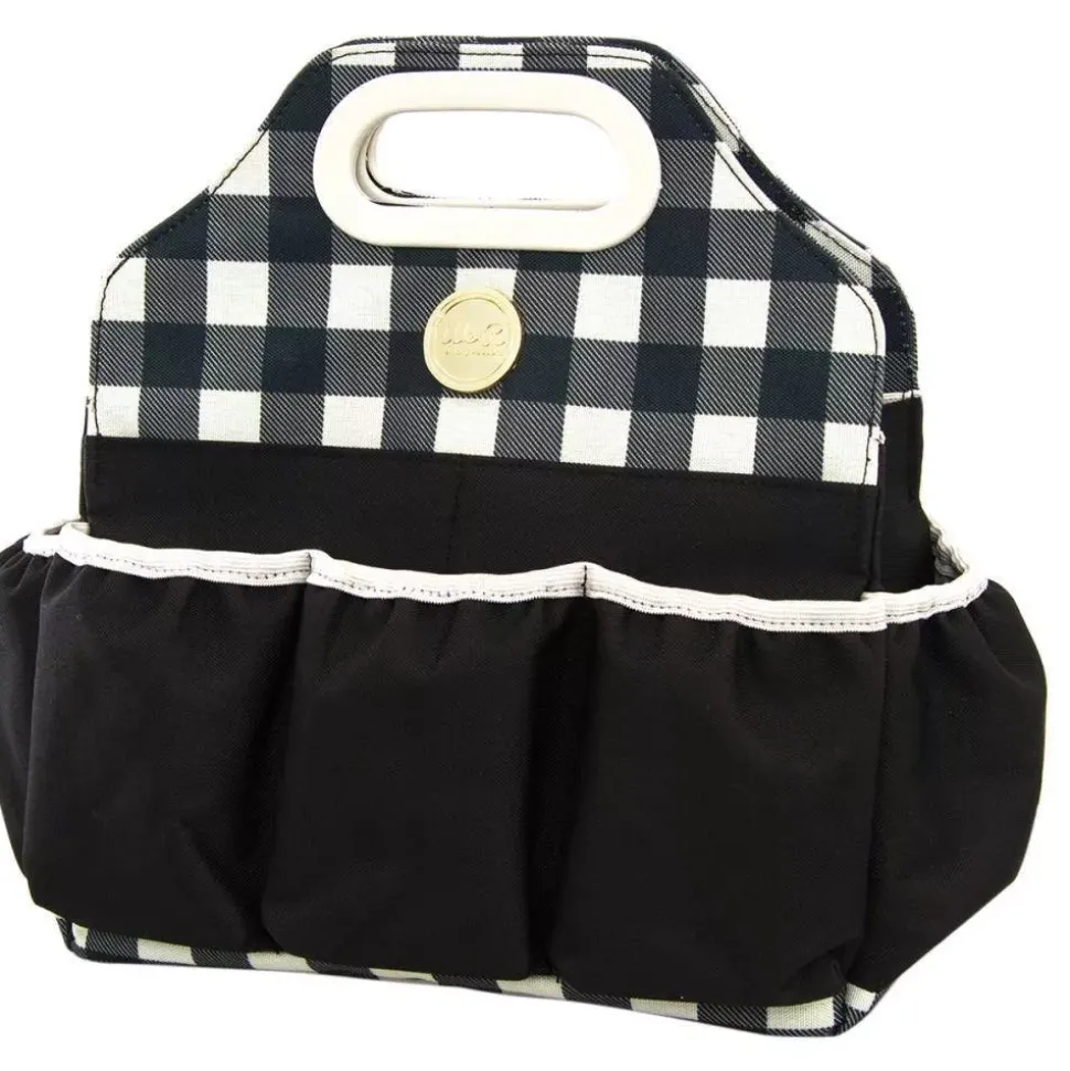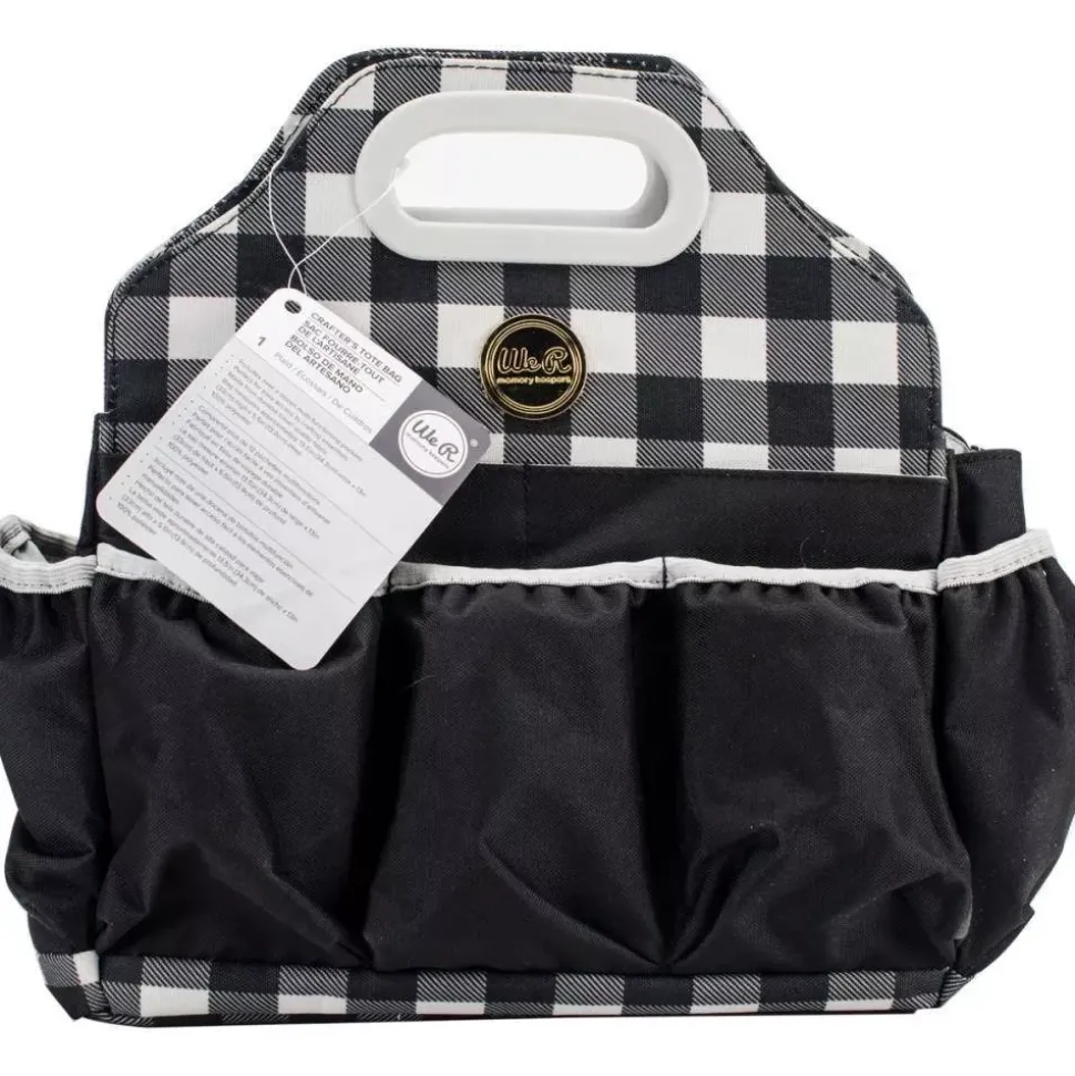 Muchos bolsillos y espacios para ordenar. Tiene con 9 bolsillos, 2 de ellos con cremallera, 3 bolsillos en el interior, 1 bolsillo con cremallera en el interior y dos asas para mejor transporte. La Tote Bag Black Plaid de Memory Keepers es el complemento ideal que no puede faltar en tu mesa de manualidades o scrapbooking.