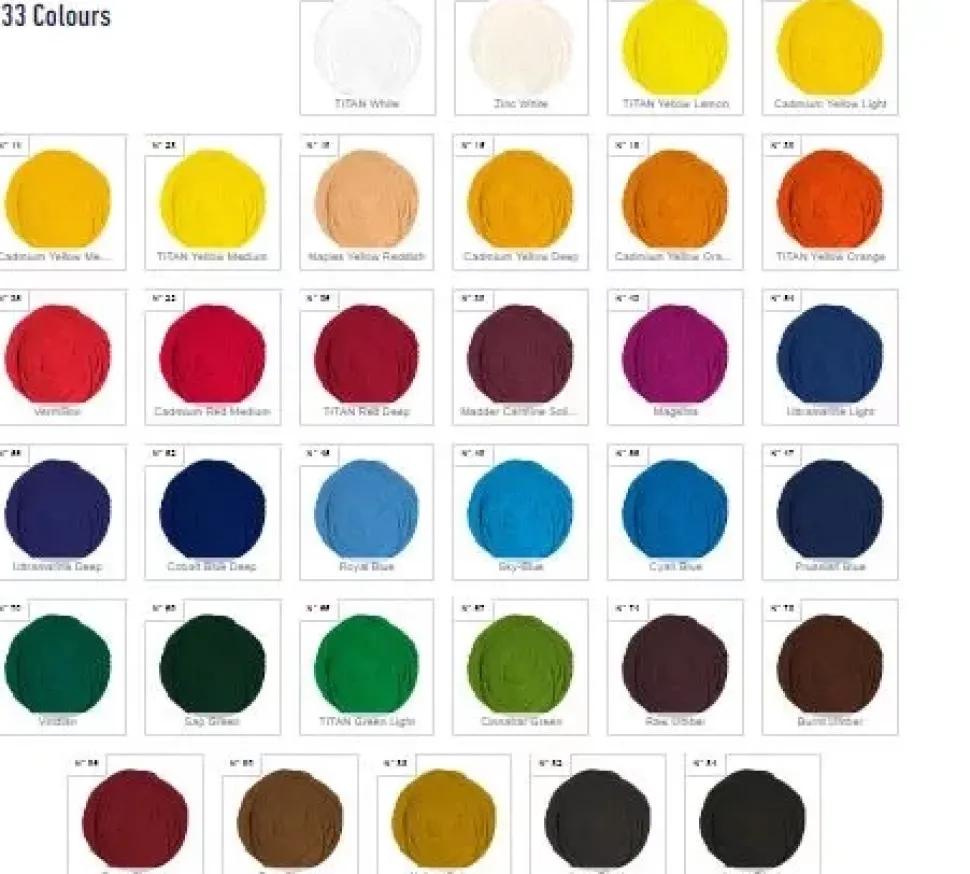 - El acrílico TITAN Arts extrafino es una pintura de calidad superior, elaborada con las mejores materias primas, con gran cobertura e intensidad de color.